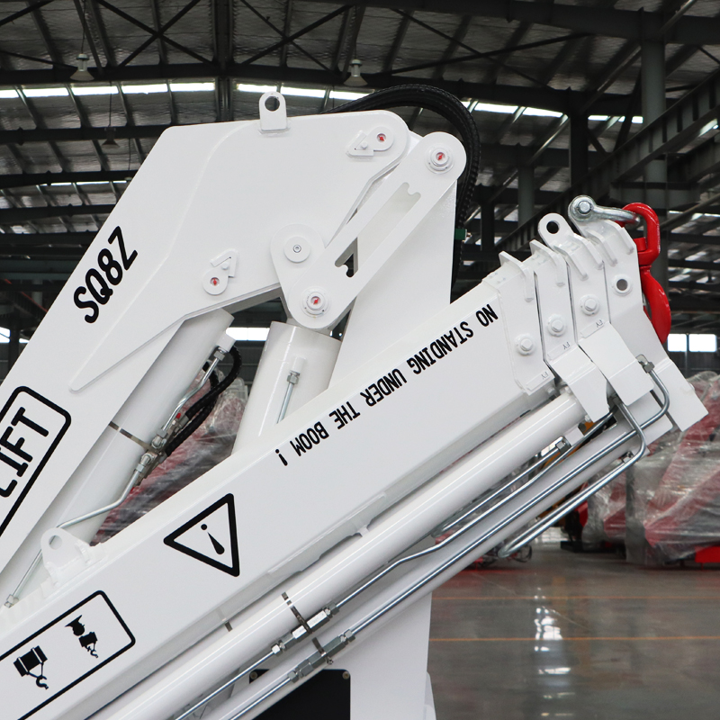 Номинальная грузоподъемность составляет 8 тонн, а максимальный рабочий радиус может соответствовать различным эксплуатационным требованиям. Он изготовлен из высокопрочной стали и оснащен точной гидравлической системой управления. Процесс подъема плавный и точный. Даже в нестабильной водной среде с волнами и течениями он сохраняет хорошую маневренность и безопасность. Он легко справляется с такими задачами, как погрузка и разгрузка улова рыбы, перемещение груза и подъем оборудования.